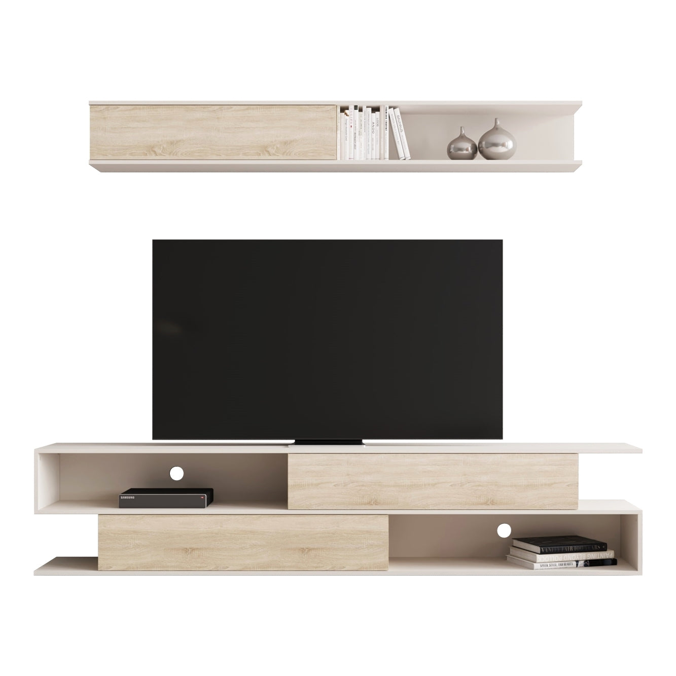 El salón BRICK es la elección perfecta para quienes buscan un mueble de diseño actual, funcional y con gran personalidad. Su acabado en blanco y roble aporta luminosidad, calidez y estilo, convirtiéndose en el protagonista del salón.