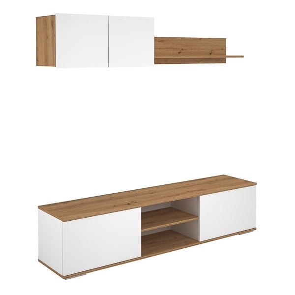 El conjunto de salón 180 cm en roble albar y blanco soft es la opción perfecta para quienes desean un salón moderno, funcional y bien organizado.