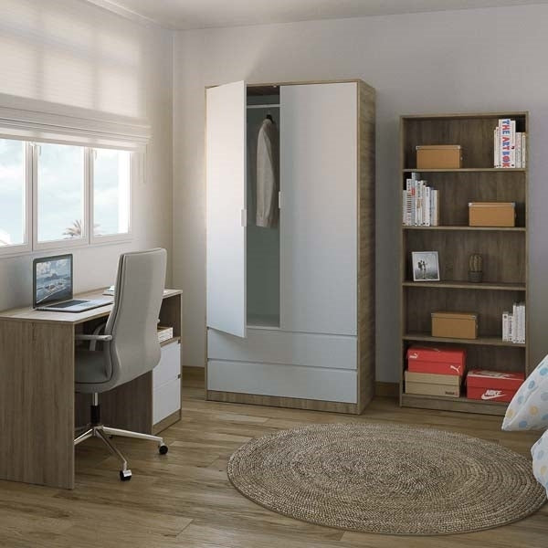 El Armario de 2 Puertas y 2 Cajones Roble Cortez y Blanco Liso te ofrece capacidad, diseño y durabilidad al mejor precio.