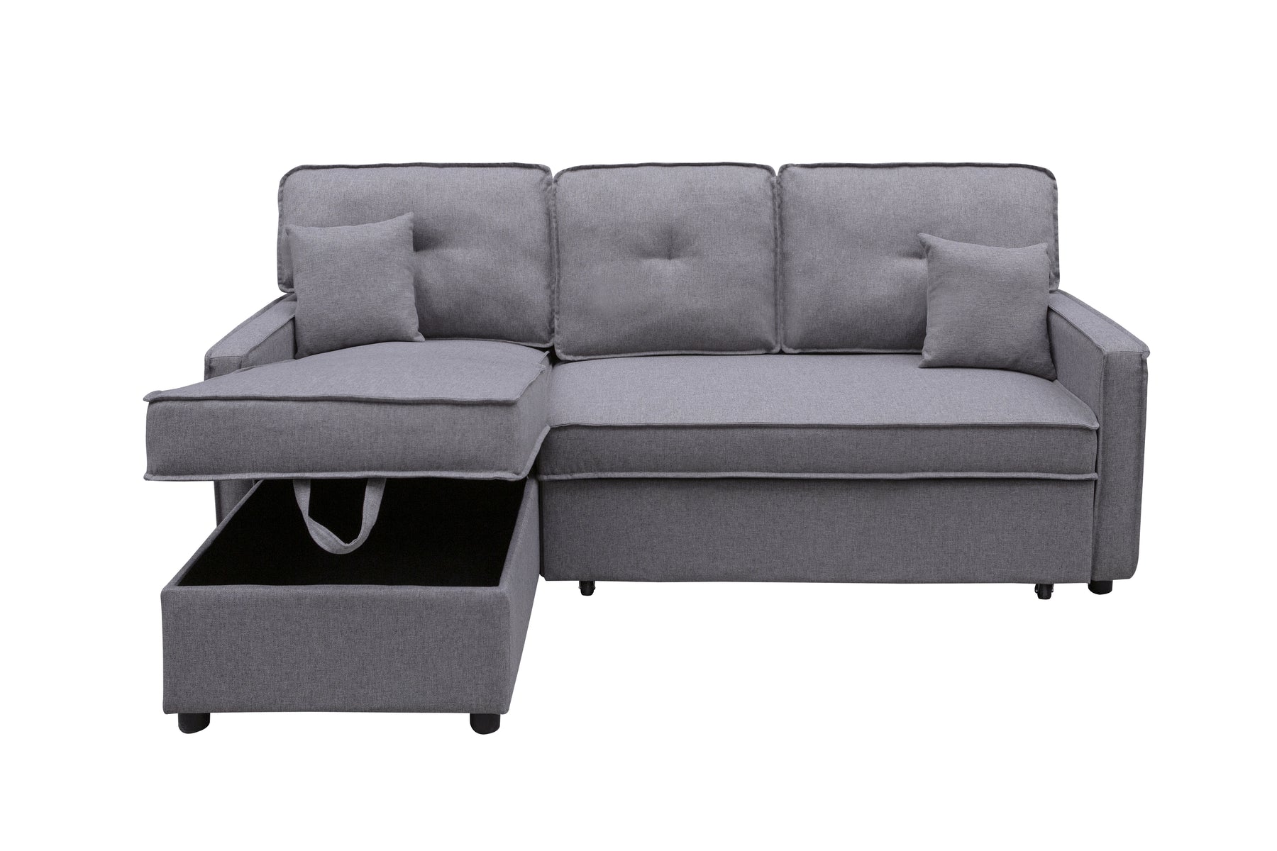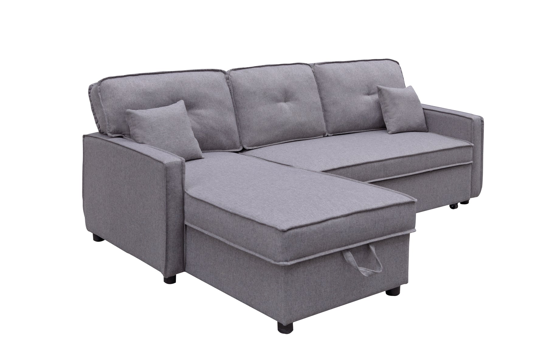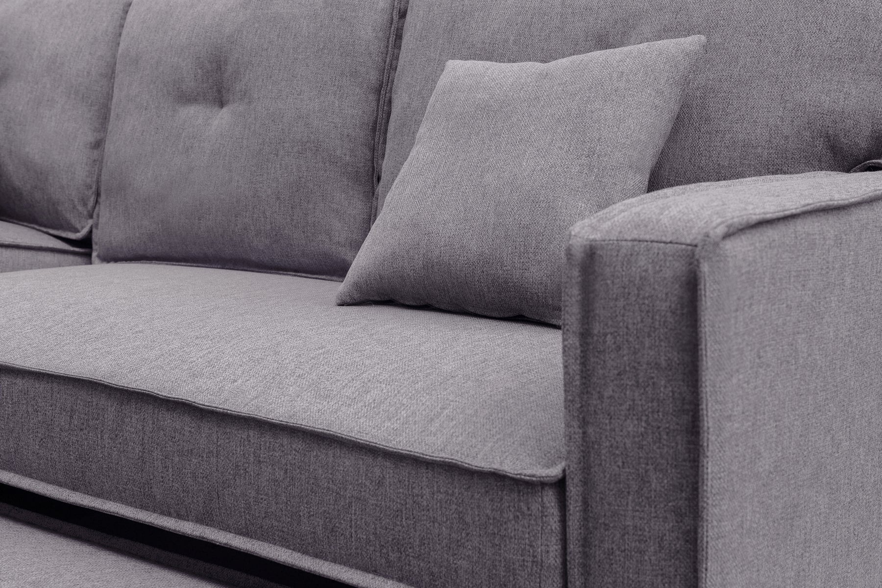 Este modelo destaca por su sistema de cama inferior extraíble, que convierte el sofá en una cama amplia en cuestión de segundos, ideal para visitas o para optimizar espacios reducidos. Además, cuenta con un arcón de gran capacidad en el módulo chaise longue, perfecto para guardar mantas, cojines o lo que necesites siempre a mano.
