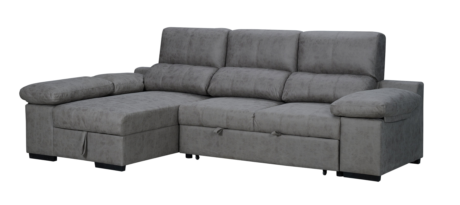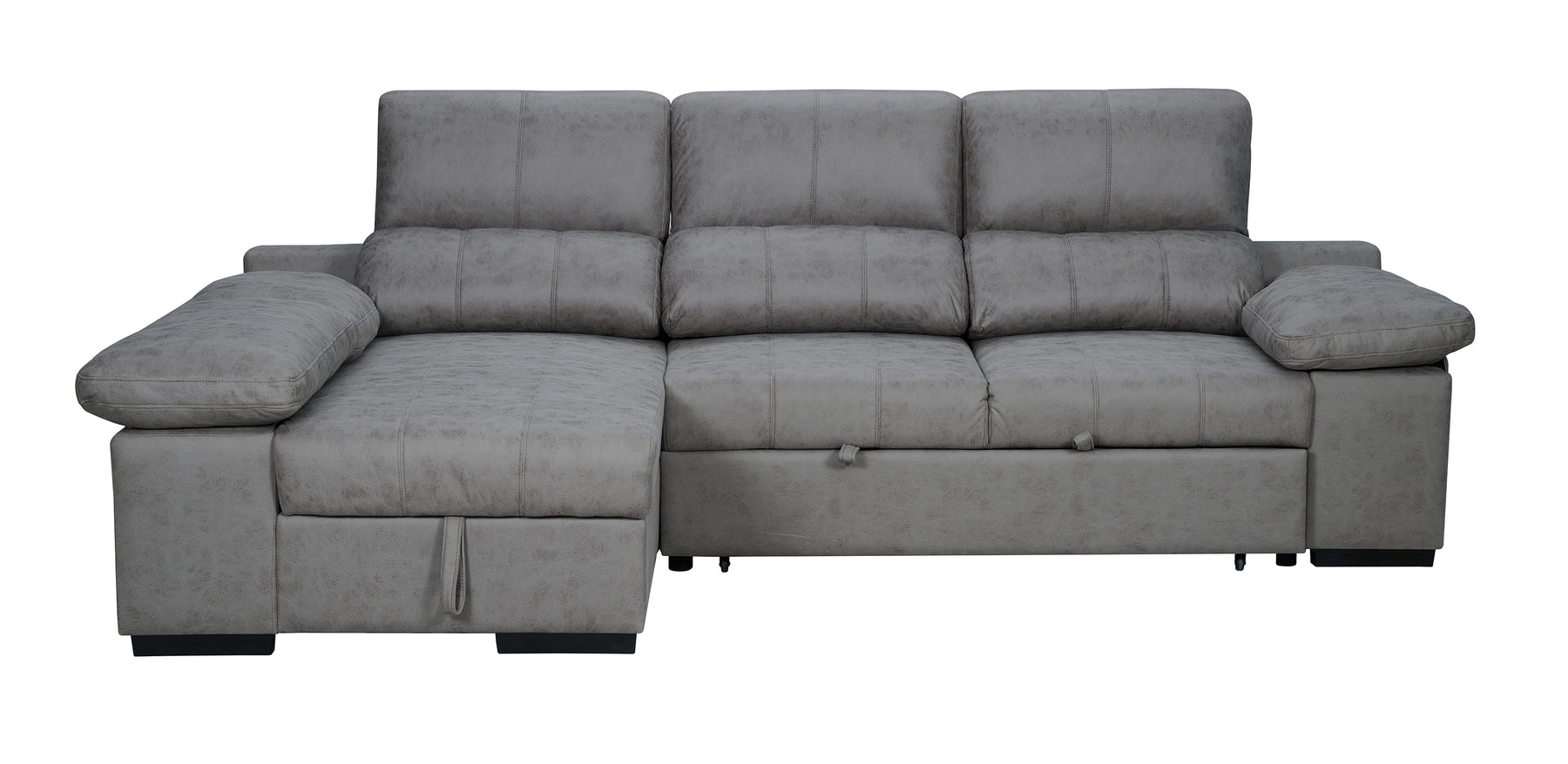 Este modelo destaca por su sistema de apertura que lo convierte en cama en segundos, ofreciendo un descanso cómodo para ti o para tus invitados. Además, incluye un arcón de gran capacidad en el módulo chaise longue, ideal para guardar mantas, cojines o lo que necesites.